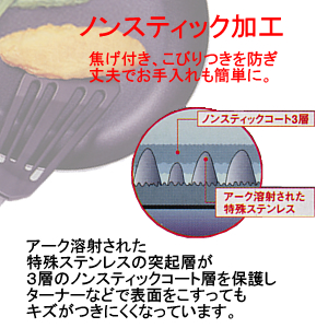 | ◇◆ 特徴 ◆◇ ノンスティック加工が焦げつき、こびりつきを防ぎ 丈夫でお手入れも簡単にできます。 ○火加減について 全面多層構造のビタクラフトは、鍋底から伝わってくる熱をしっかり受け止め 鍋全体に効率よく伝えます。鍋の縁から蒸気が上がり、ベイパーシールがかかったら (フタを回してクルクル回る状態になったら)必ず火を弱めてください。 強火は必要ありません。通常は弱火〜中火の火加減で十分です。 不必要な加熱は焦げつきの原因となるばかりでなく、食材のうまみや栄養素を 奪ってしまいます。また、把手などにも負担をかけ、鍋を傷める原因ともなります。 火加減は必ず中火以下でご使用ください(電気クッキングヒーターの場合も同様に 中火以下でご使用ください) ・ IHクッキングヒーターをお使いの場合も基本的に火加減につきましては 「中火」「弱火」「極弱火」という表記になっています。 強火以上の火力はビタクラフトでは使用しません。中火以下でお使いください。 ・ IHクッキングヒーターでは目で火力の確認が難しいため 予熱、焼く調理、炒める調理など 鍋が高温になりやすい調理の火力には特にご注意ください。 長時間の空炊きや強い火力レベルの使用は 本体変形の原因になり使用できなくなります。 |