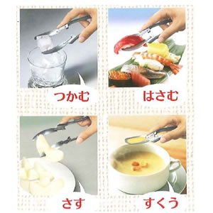 | ◇◆ 特徴 ◆◇ スプンばしUは、箸とスプーンとフォークを合体させた新しい食器具です。 「はさむ」だけではなく「つかむ」 「すくう」だけではなく「はさみながらすくう」 「刺す」だけではなく「刺してはさむ」 その他いろいろな用途にご使用いただけます。 ※手元に固定するバンドが付いて落さずに使えます。 |